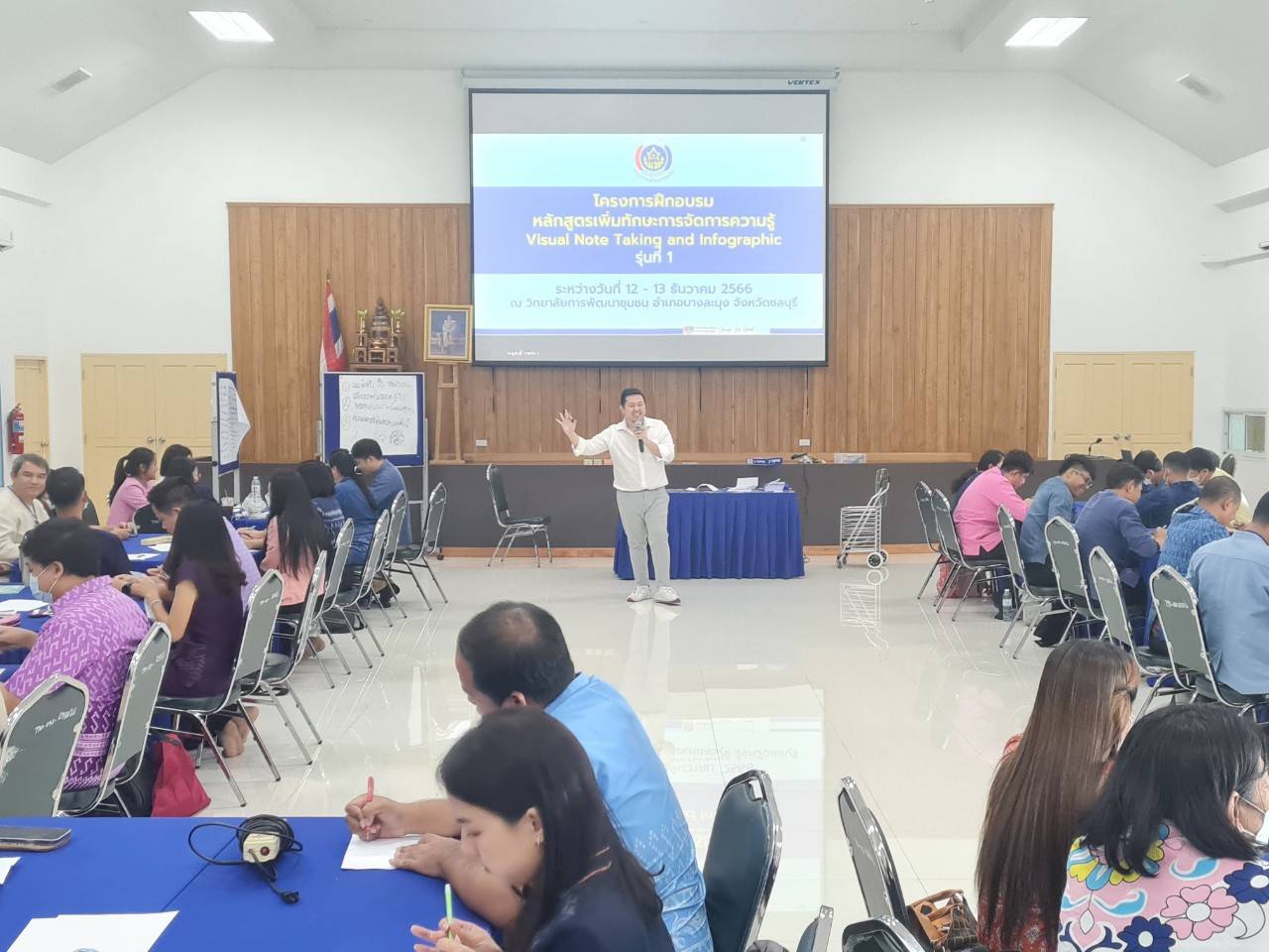 โดยมี อ.พงศธร อาชวพงศกร เป็นวิทยากร ผู้เข้าอบรมเป็นข้าราชการสถาบันการพัฒนาชุมชน และศูนย์ศึกษาและพัฒนาชุมชนทั่วประเทศ 11 แห่ง โดยรองอธิบดีกรมการพัฒนาชุมชน (นายวิฑูรย์ นวลนุกูล) เป็นประธานในพิธีมอบประกาศนียบัตร ที่วิทยาลัยการพัฒนาชุมชน จ.ชลบุรี
