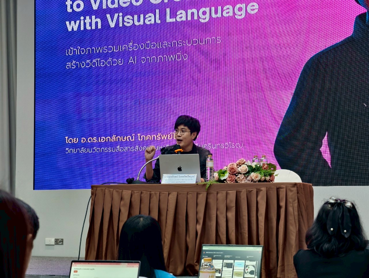 - อ.ดร.เอกลักษณ์ โภคทรัพย์ไพบูลย์ ในหัวข้อ การสร้างวิดีโอด้วย Generative AI รู้จักกับเครื่องมือ Generative AI ที่ช่วยสร้างวิดีโออัตโนมัติจากคำบรรยาย ข้อความ หรือภาพนิ่ง