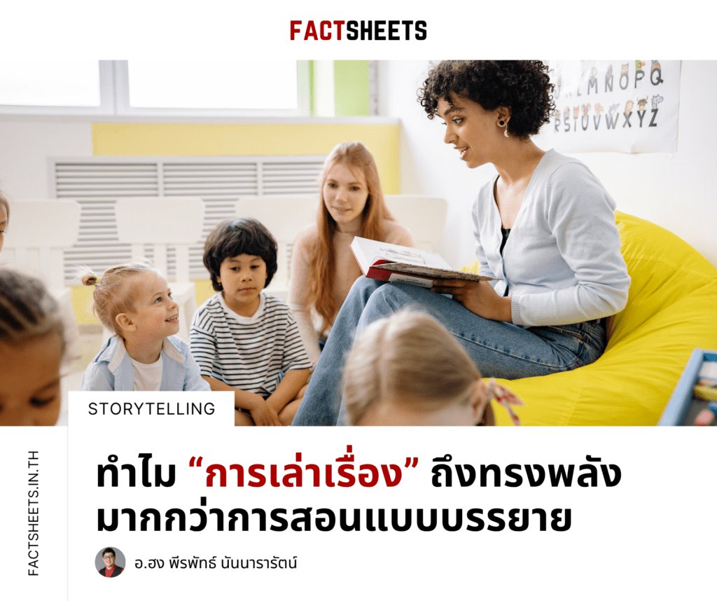 แต่ Storytelling จะ “ทำให้รู้สึก และจดจำ” สัปดาห์นี้ ลองเริ่มเล่าเรื่องสั้นๆ ในคลาส หรือในการอบรม แล้วลองสังเกตดูครับว่าพลังของเรื่องเล่าจะเปลี่ยนบรรยากาศในห้องเรียนไปในทิศทางไหน นักเรียนจดจำได้เพิ่มขึ้นไหม ลองดูนะครับ